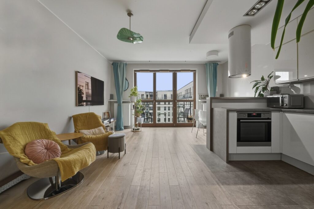 - Spacious living room with kitchenette and balcony exit – 28.24 m²