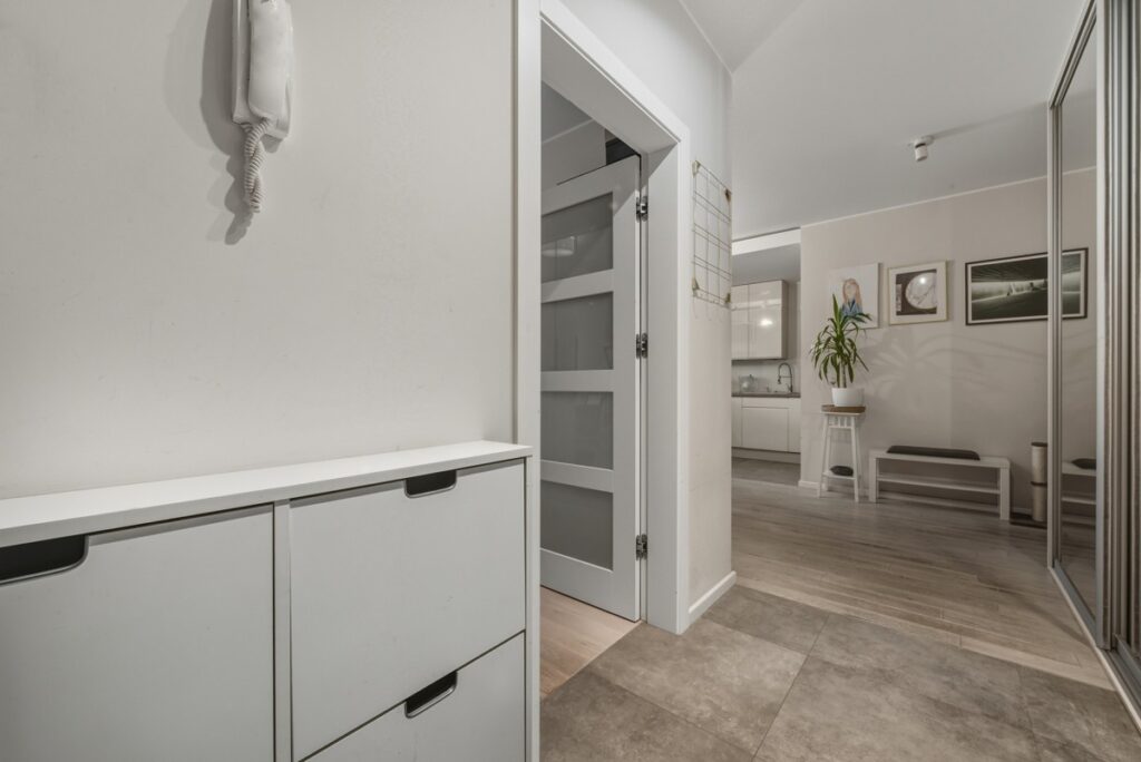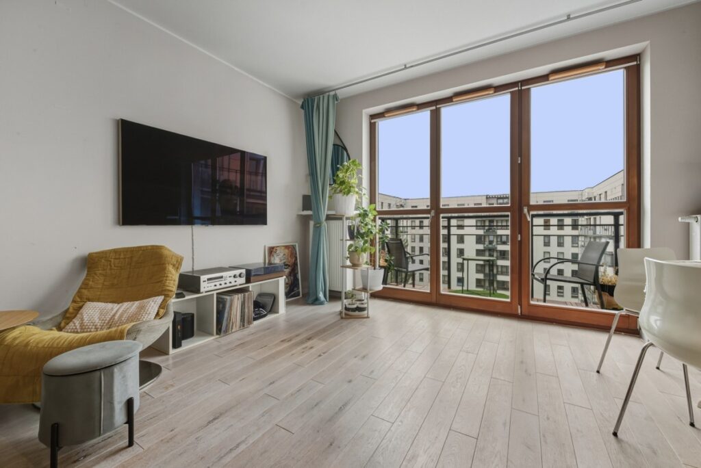The apartment is situated on the 5th floor of a 6-story apartment building from 2014, in the intimate „Atelier Żoliborz” estate. The building is finished to a good standard, well-maintained, and secure – equipped with a modern elevator, monitoring, and security. Quiet and cozy – only 3 apartments per floor. Well-kept and nicely landscaped common areas and outdoor space between buildings. The apartment is very bright thanks to large windows with east/west exposure. The functional layout ensures comfort and privacy for residents.