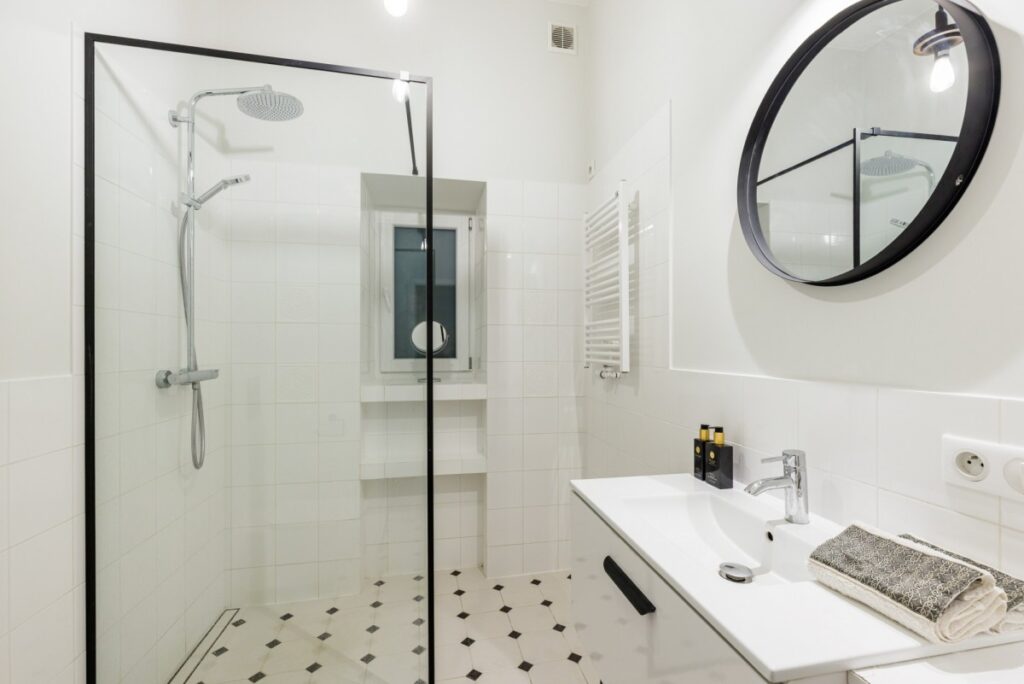 The premises consist of four rooms, a kitchen, two bathrooms, and a private staircase, which is a great advantage – it provides a sense of intimacy and independence.