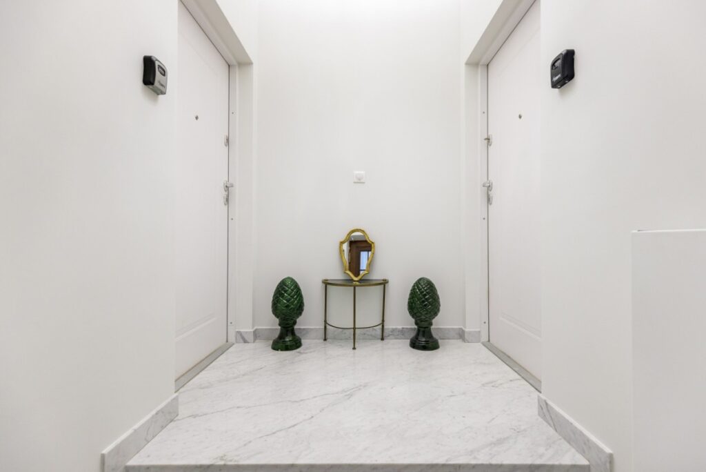 Wysokie sufity, duże okna i klasyczna architektura kamienicy nadają wnętrzom niepowtarzalny klimat i elegancję charakterystyczną dla historycznej zabudowy tej części miasta.