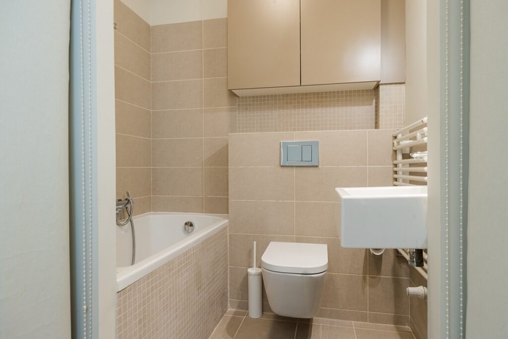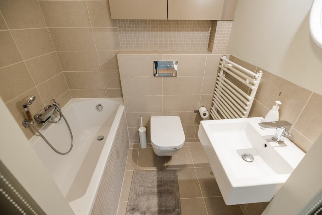 Trzy sypialnie:, dwie mniejsze z oknami na północny zachód, oraz duża sypialnia z wyjściem na balkon od strony południowo.- wschodniej Przestronna łazienka z wanną, wyposażona w piec dwufunkcyjny.