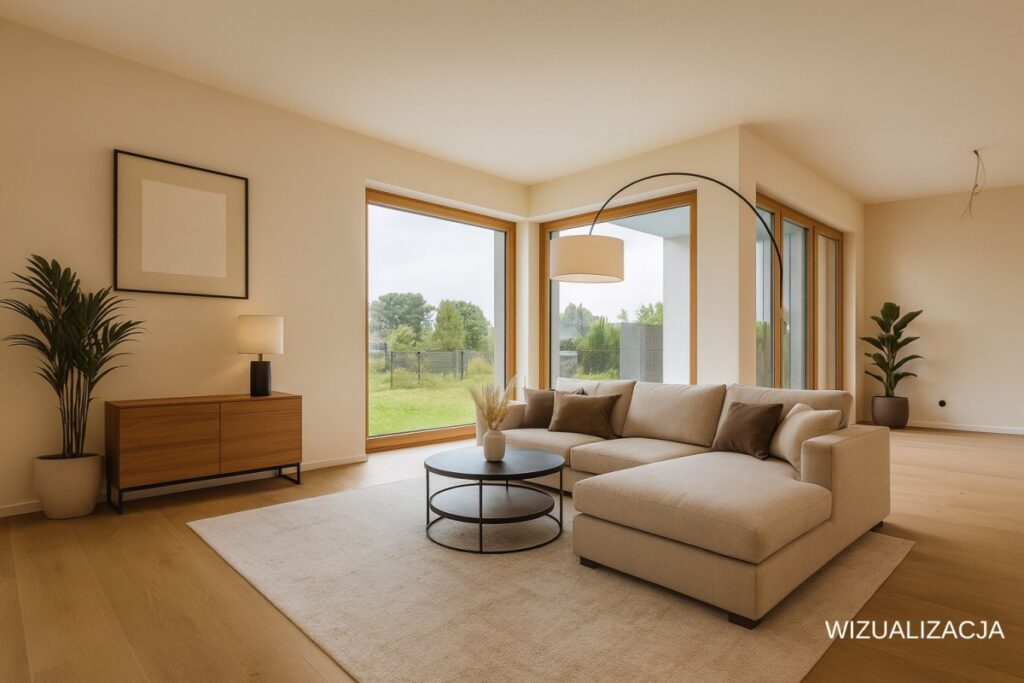 KIERUNEK OKIEN: południe (kuchnia z balkonem, salon) i wschód (sypialnia, biuro, salon z tarasem)