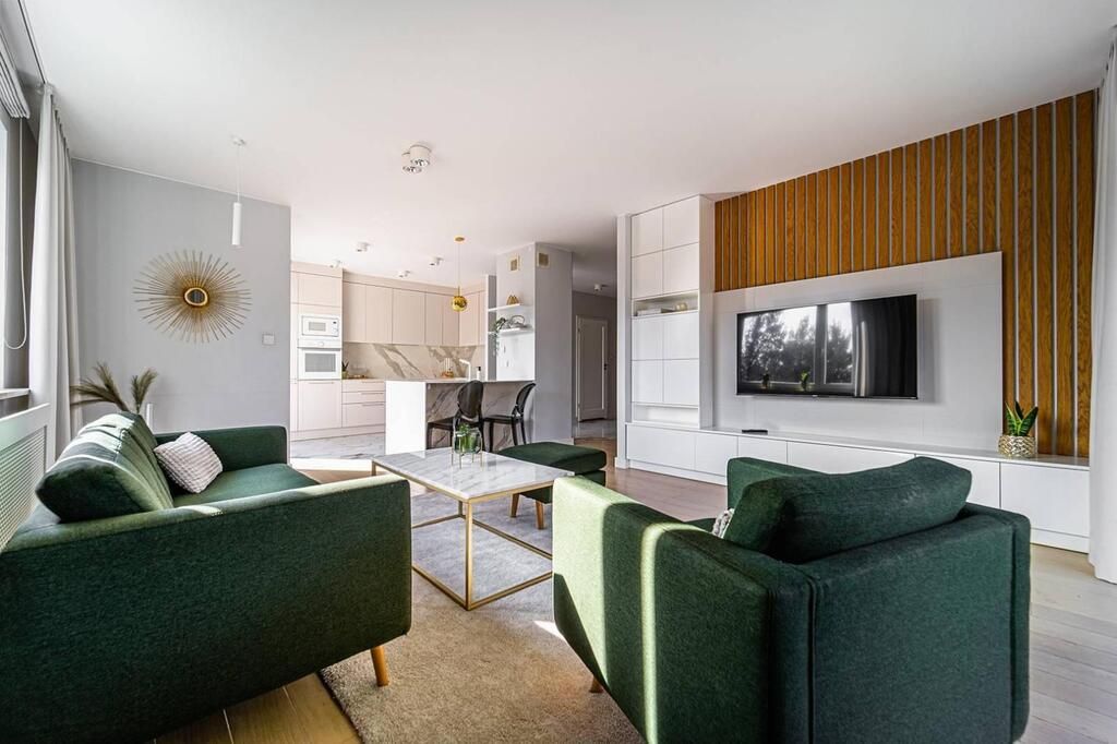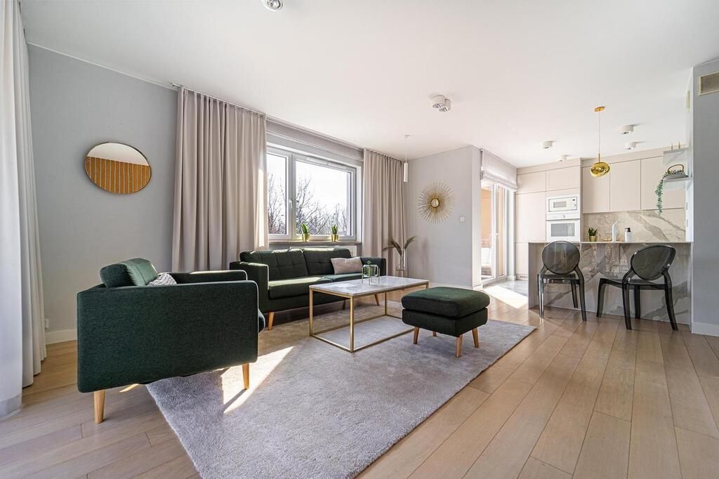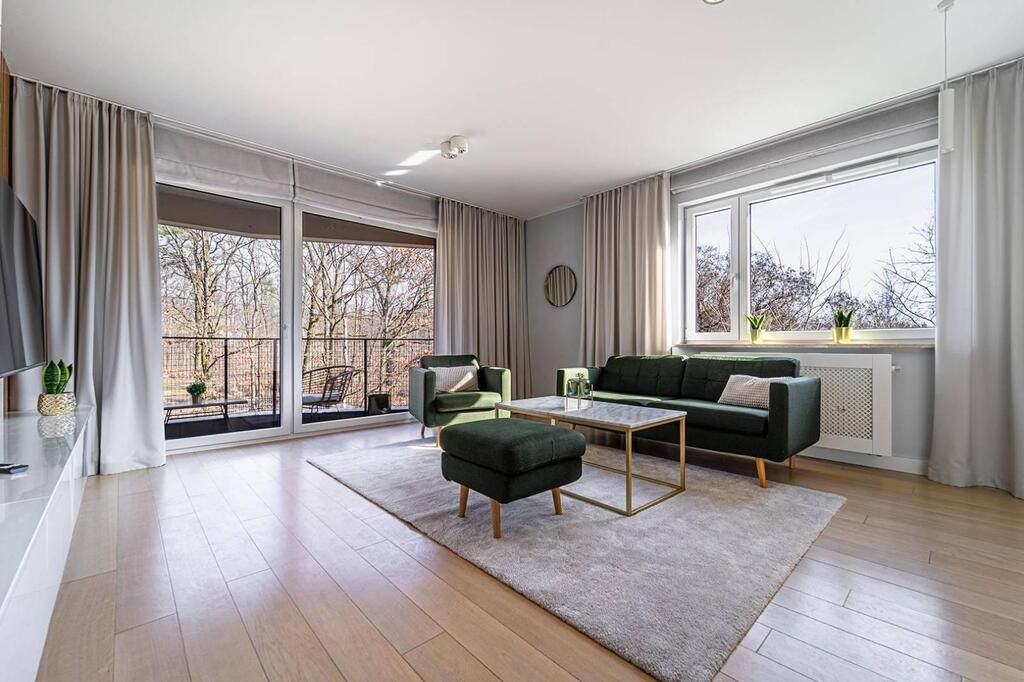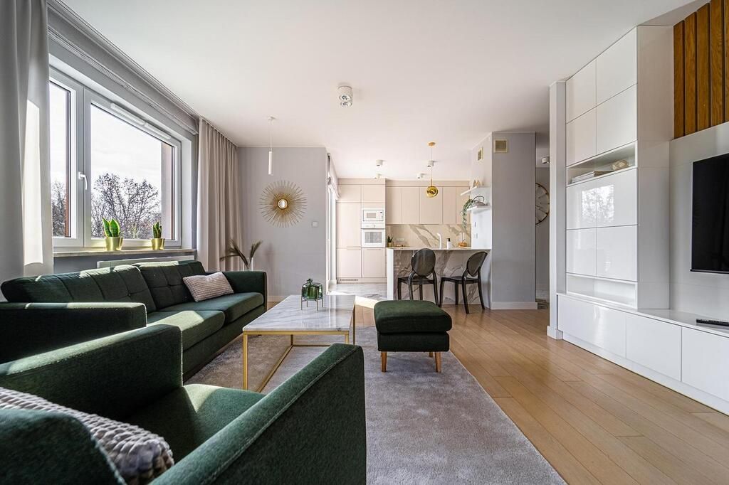 MATERIAŁY WYKOŃCZENIOWE: wysokiej jakości okna i drzwi antywłamaniowe. Kuchnia w pełni wyposażona w sprzęt AGD. Podłogi w pokojach pokryte są drewnianym parkietem, zaś w łazience, korytarzu i kuchni gresem.