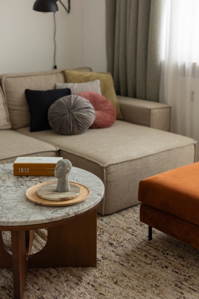 Wnętrze zaprojektowano w stylu Mid – Century Modern. Kilka lat temu mieszkanie przeszło gruntowny remont z wymianą instalacji, dzięki czemu jest gotowe do wprowadzenia. Składa się z sypialni, kuchni z jadalnią, salonu, łazienki oraz przedpokoju z przedsionkiem.